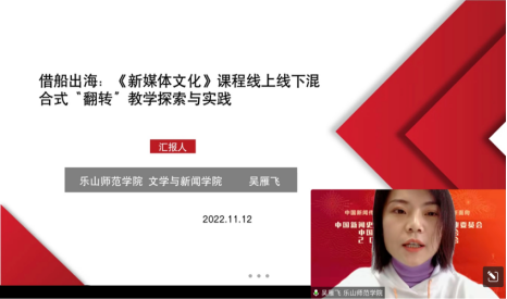 乐山师范学院讲师吴雁飞作了名为《借船出海:〈新媒体文化〉课程线上线下混合式“翻转”教学探索与实践》的主题报告。她从“学习金字塔”理论出发,提出了让学生主动学习的必要性,指出“线上+线下”的混合式翻转模式能实现知识的“接受-输出-再接受-持续输出”,从而达到知识的应用与固化,提升学生学习效果。在具体方案设计上,她介绍了以学生为主体的混合式教学的4个阶段:MOOC内容学习、线上翻转课程运行管理、线下翻转、教学评价和反思。