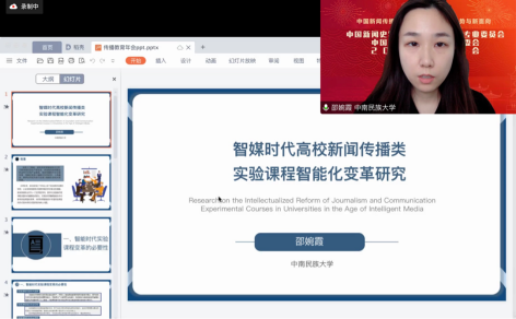 中南民族大学讲师邵婉霞作了名为《智媒时代高校新闻传播类实验课程智能化变革研究》的主题报告。首先,她从当前文科变革课程内容的大趋势、变革课程理念的迫切性和变革课程形态的必然性出发,阐释了智能时代实验课程变革的必要性。其次,她介绍了新闻传播实验类课程的发展现状,提出了目前实验教学的课程设置困境、业务模式困境和环境建设困境。最后,她介绍了未来智能技术革新课程建设的新模式,即引入虚拟可视化、人机双师的实验课堂新模式,打造个性化学习新流程。