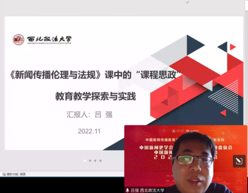西北政法大学副教授吕强作了名为《〈新闻传播伦理与法规〉课中的“课程思政”教育教学探索与实践》的主题报告。首先,他指出《新闻传播伦理与法规》这门课程是西北政法大学新闻与传播专业的学科基础课,融合了新闻教育与法学特色于一体。如何在该门课程中引入思政要素,是目前教学中亟待解决的问题。其次,在提出“学生主体、教师主导”的思路基础上,他归纳了此次教改的主要方法:实践教学法、翻转课堂、问卷调查和访谈法。最后,他总结了课程思政教学改革的五项目标,即提升教师的思政教学理念、构建课程思政体系、扩展多种教学方法、发展多元课程评价方式、科学评估思政育人效果。