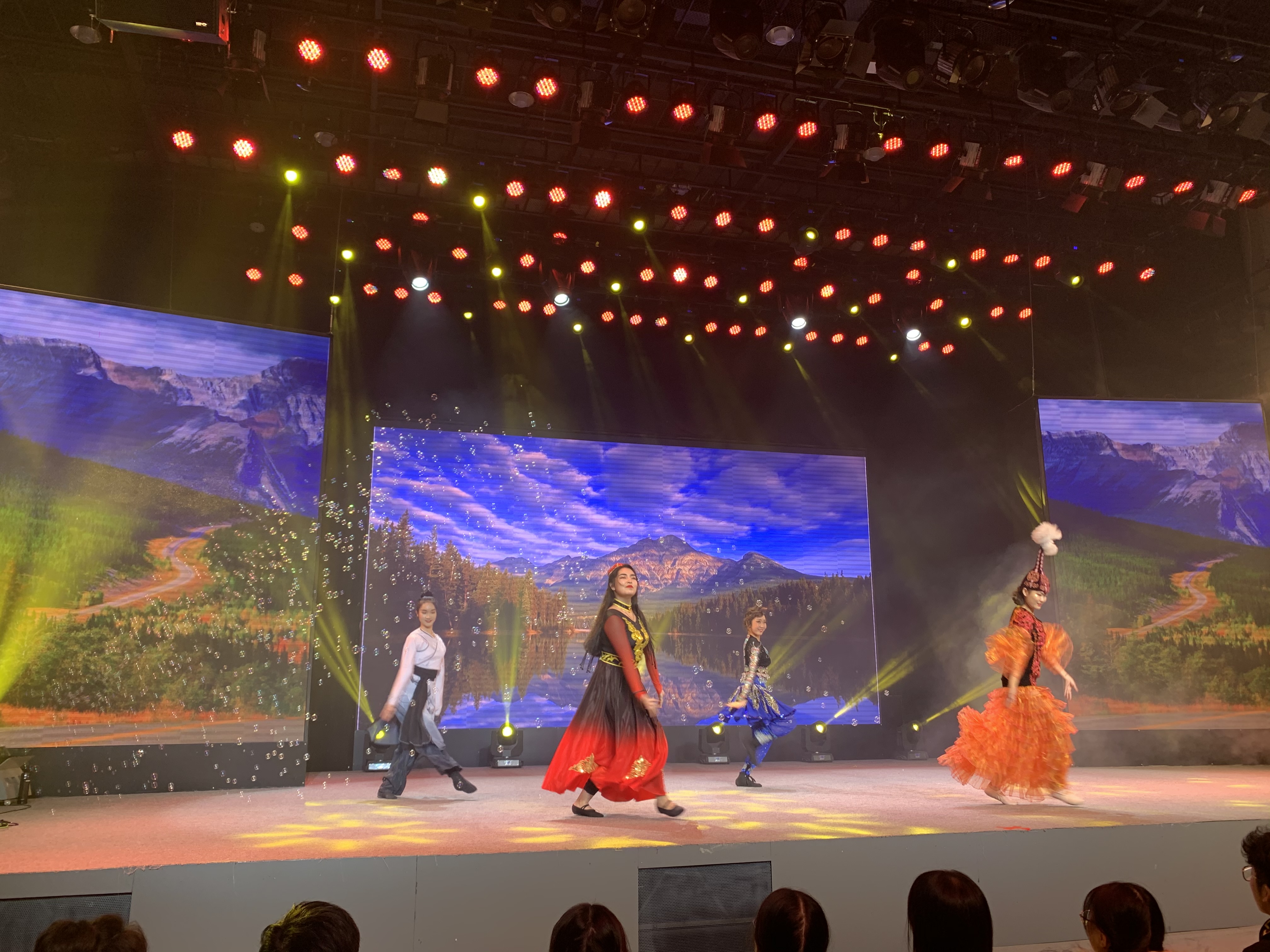 舞台灯光系统、舞台音响系统、LED全彩大屏系统、摄像摇臂系统、一体化录播控制切换系统、舞台机械系统、舞台幕布系统等软硬件设备 |