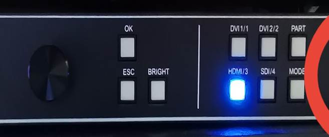 3、LED大屏的信号源选择,通过视频处理器的HDMI/3DVI1/1DVI2/2按键进行切换。HDMI/3是机柜处的台式电脑,DVI1/1是房间中间电脑桌预留的接线HDMI主(这根线接在1号台式电脑的主机上),DVI2/2是房间中间电脑桌预留的接线HDMI副。