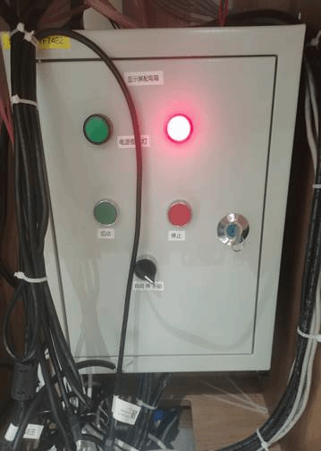 1、按下LED大屏配电箱上的绿色启动按钮、开启LED显示屏,开启后绿灯亮起。