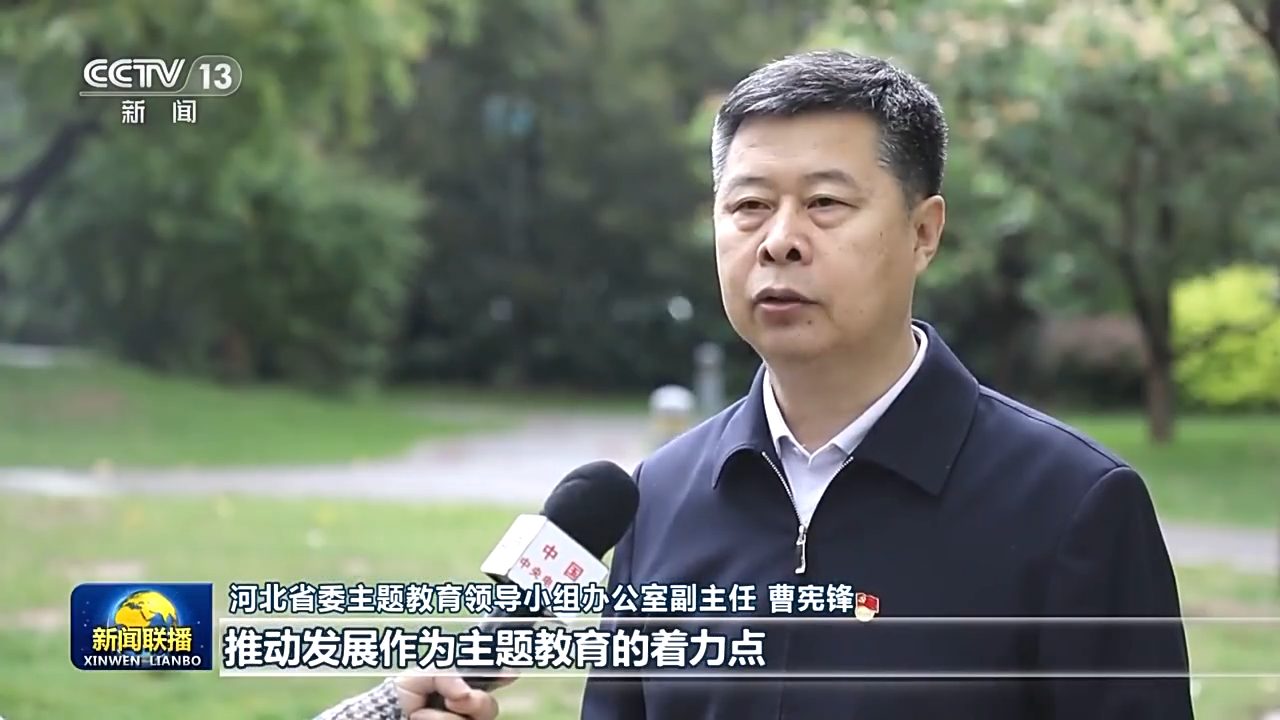 河北省委主题教育领导小组办公室副主任 曹宪锋:我们坚持把以学促干、推动发展作为主题教育的着力点,聚焦深入推进京津冀协同发展、高标准高质量建设雄安新区等重大国家战略和国家大事,聚焦加快建设现代化产业体系、优化营商环境,以推动高质量发展、提高人民生活品质的新成效检验主题教育成果。
